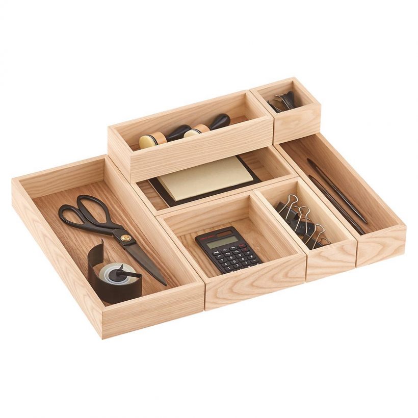 Made with solid ash wood, these stackable drawer dividers can easily suit most desk drawers, keeping out-of-sight objects effortlessly organized.