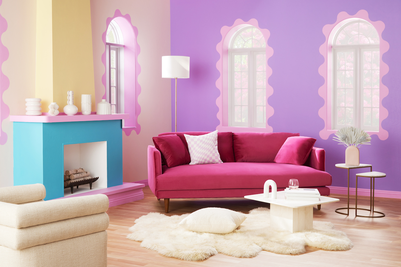 Pink isn’t for everyone. Thankfully, there are ways to bring the Barbiecore trend into our space without going overboard. “Our Barbie x Joybird collaboration includes nine limited-edition pieces and three jewel-toned fabrics, perfect to add a pop of color to a more neutral space or to layer on the bold in a more maximalist space,” says Walker.